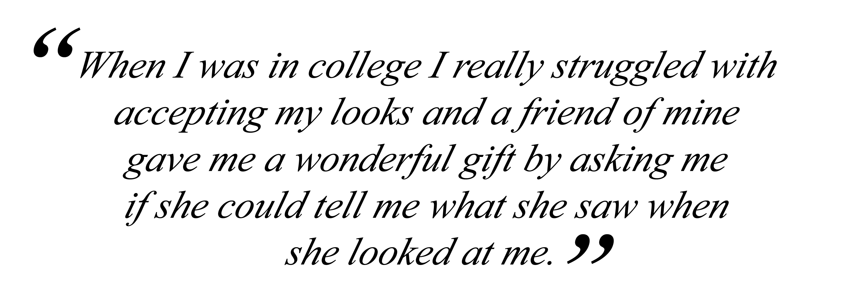 I’d also encourage people who are struggling with self-image to talk with someone they trust. When I was in college I really struggled with accepting my looks, and a friend of mine gave me a wonderful gift by asking me if she could tell me what she saw when she looked at me. She didn’t give me platitudes like “you’re beautiful no matter what!”; she simply described myself to me, and while that didn’t magically solve the issue, it was the first time I’d really allowed myself to realize that people weren’t looking at me and deciding whether I was pretty or ugly, but that they saw the entirety of me. If someone is fortunate enough to have a loving, trusted person in their life who you could do that exercise with, that might be helpful.