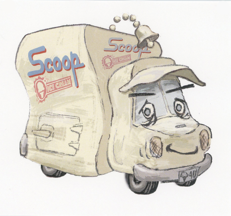 “What about an ice cream truck named Scoop who is too old to compete with all the new ice cream trucks? Scoop is so retro he has only three wheels!”